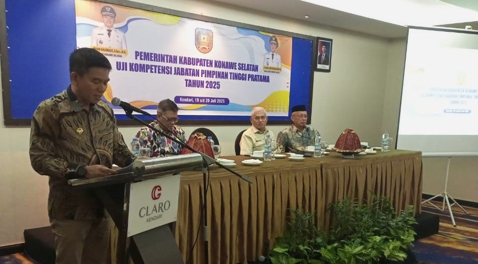 KENDARI, INDONESIAKLIK.com – Bupati Konawe Selatan, Irham Kalenggo, S.Sos., M.Si., secara resmi membuka kegiatan Uji Kompetensi Jabatan Pimpinan Tinggi (JPT) Pratama Tahun 2025 di lingkungan Pemerintah Kabupaten Konawe Selatan. Kegiatan ini berlangsung selama dua hari, mulai Sabtu, 19 Juli 2025, bertempat di Hotel Claro Kendari.